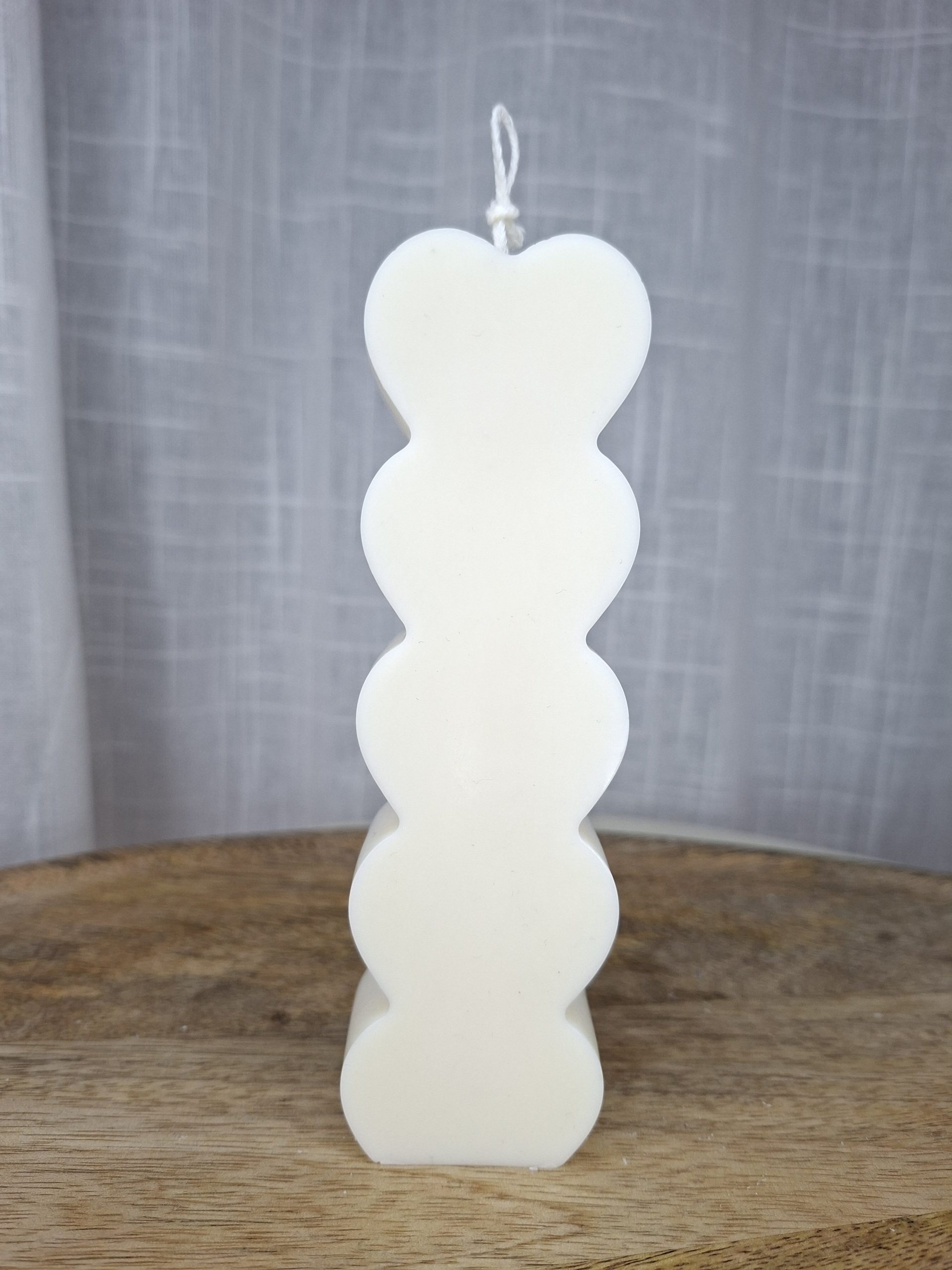 Chaque bougie est façonnée individuellement. De légères imperfections (bulles d’air, variations subtiles de texture) peuvent apparaître. Ces particularités n’altèrent en rien la qualité et sont la signature d’un produit authentiquement fait main.